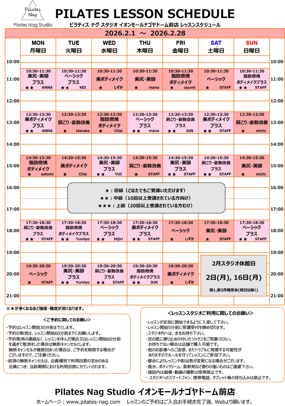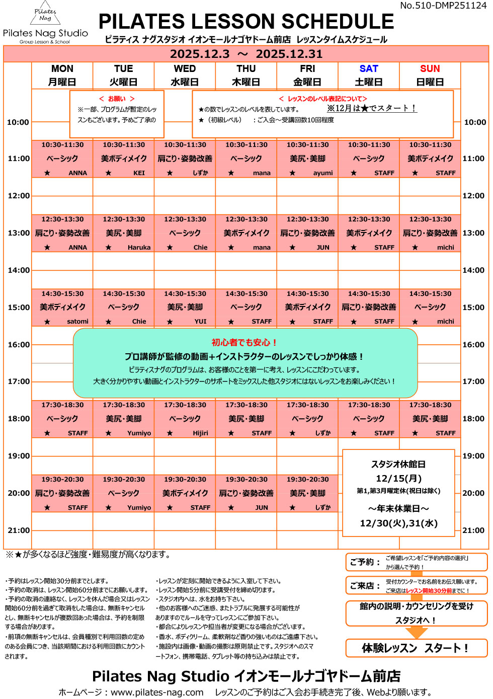 | スタジオ | ピラティス ナグ スタジオ イオンモールナゴヤドーム前店 |
