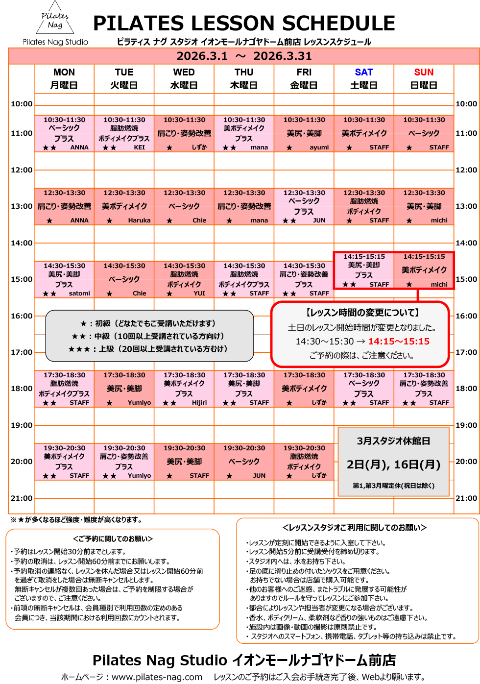 | スタジオ | ピラティス ナグ スタジオ イオンモールナゴヤドーム前店 |