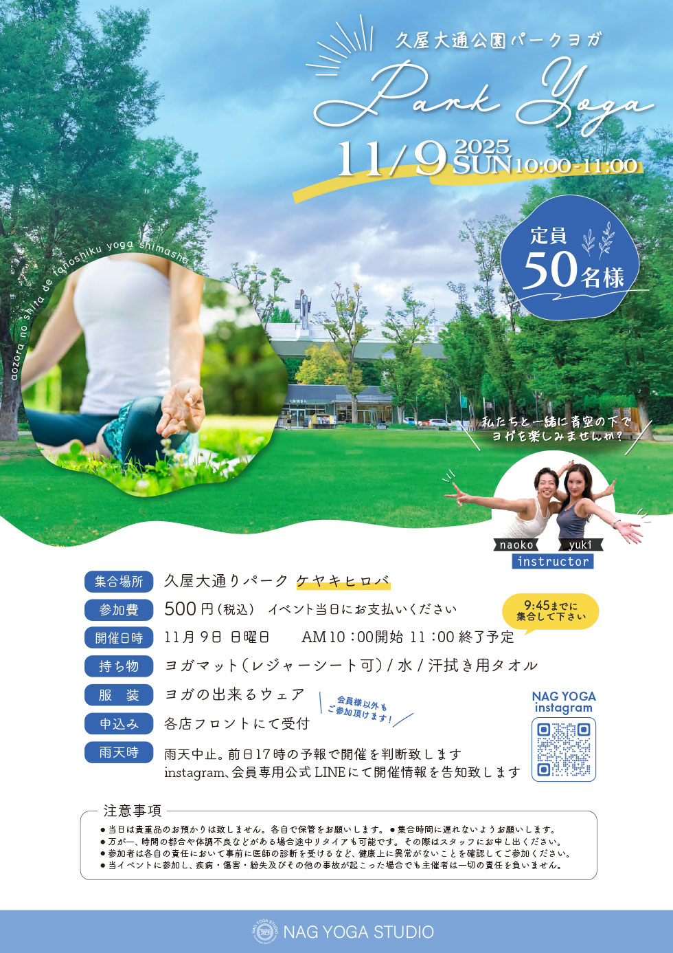 2025年11月9日(日) パークヨガ開催 in久屋大通りパークケヤキヒロバ